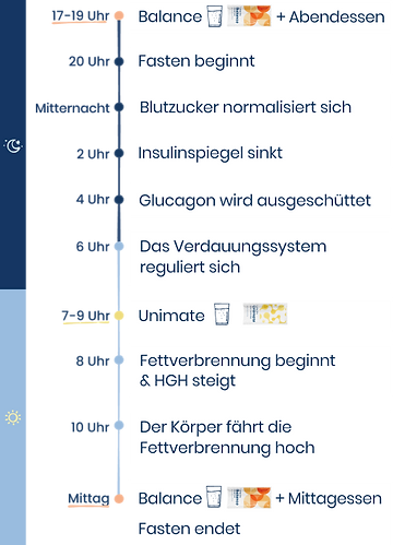 Unimate und Balance helfen Dir, die Zeit zwischen dem Abendessen und der ersten Mahlzeit des nächsten Tages zu verlängern.